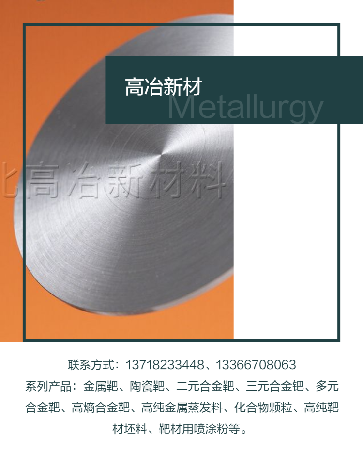 在当前材料性能日益成为核心竞争力的时代,选择可靠、专业的靶材供应商尤为重要。河北高冶新材料期待与各行业合作伙伴携手,共同推动先进材料技术的发展与应用。