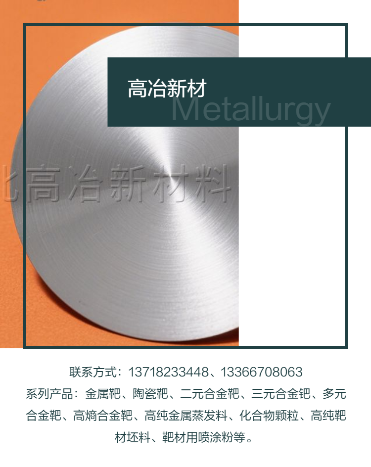 如果您正在寻找稳定可靠、性能卓越的MoNi50靶材,河北高冶新材料有限公司无疑是值得优先考虑的合作伙伴。及时联系公司了解更多产品详情与定制方案,将助力您的项目取得更大成功。